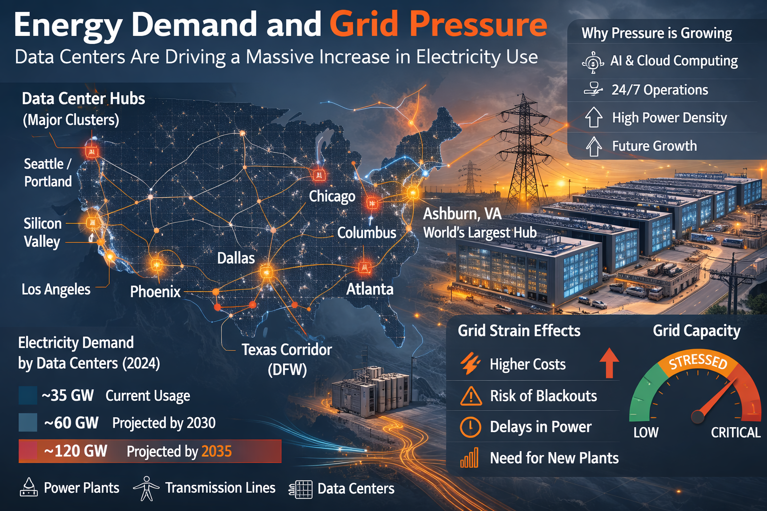 Modern AI-ready data centers are also extraordinarily power-hungry, and electricity demand is quickly becoming another major pressure point. Energy experts and researchers project that electricity consumption from data centers is likely to more than double by 2030, driven largely by AI workloads and increasingly AI-intensive applications. A single large data center facility can draw as much electricity as tens or even hundreds of thousands of homes, and when multiple hyperscale campuses cluster in one region, the cumulative load on the local grid can become substantial.