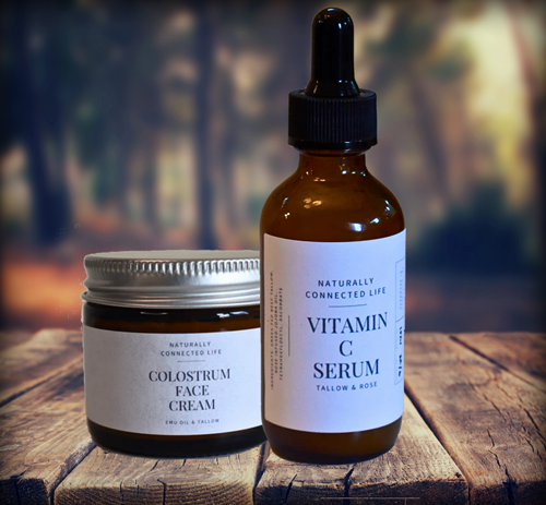 - Vitamin C Serum with Tallow + Rose – brightening, hydrating, and smells like a fresh bouquet.